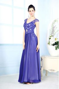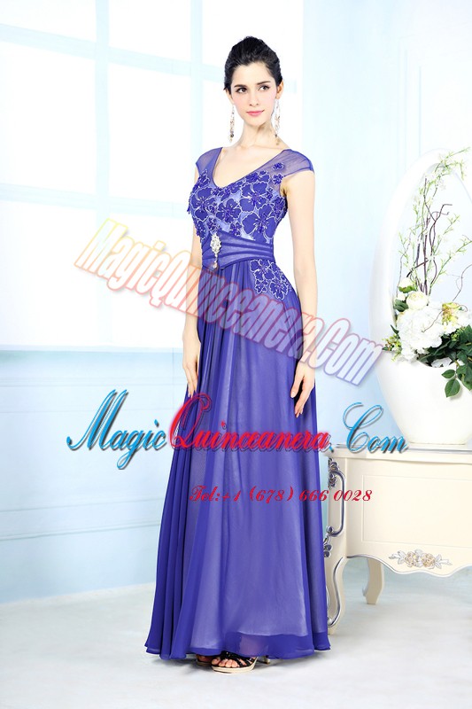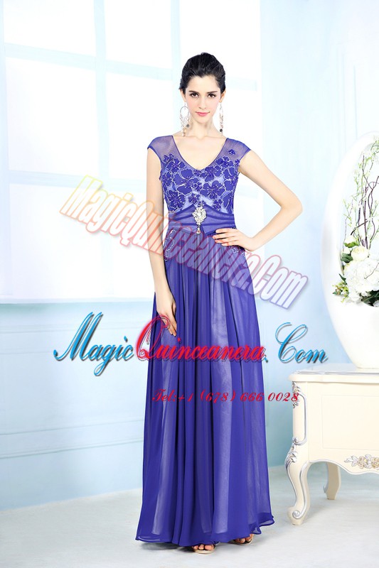 , Scoop Blue Sleeveless Chiffon Zipper Mother Of The Bride Dress for Prom and Party