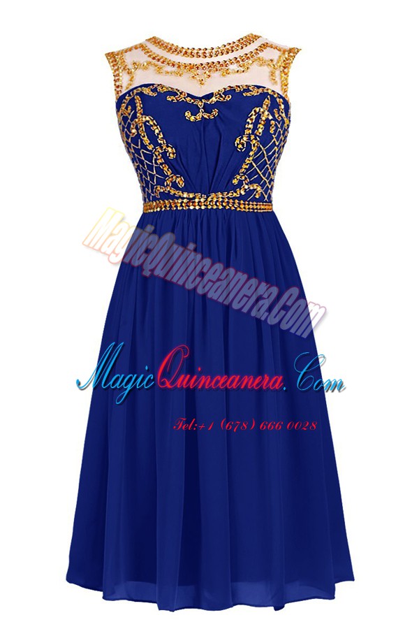 , Scoop Chiffon Sleeveless Knee Length Mother Of The Bride Dress and Beading