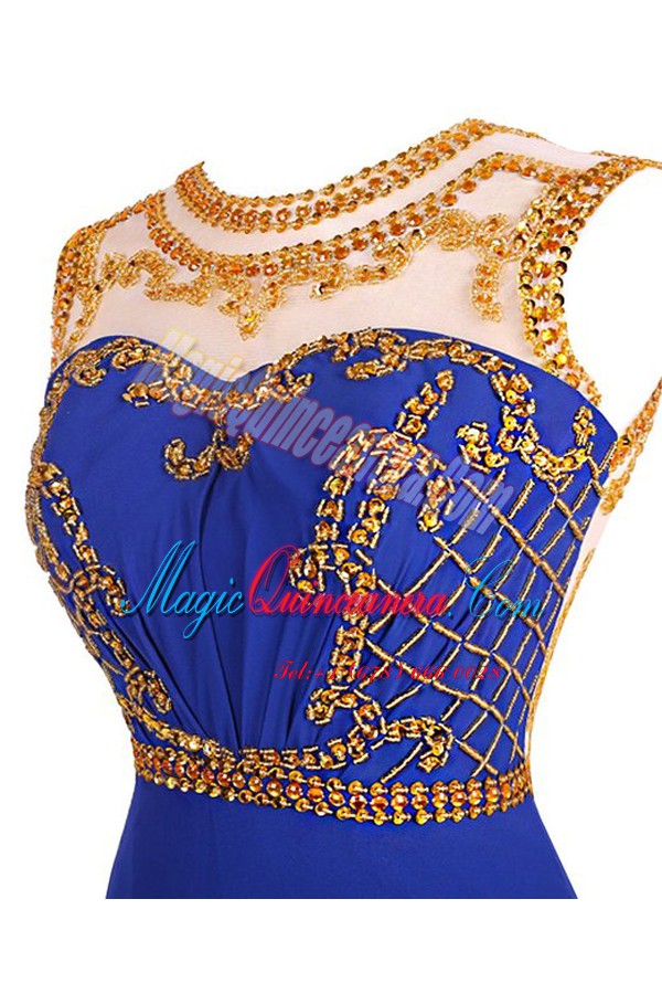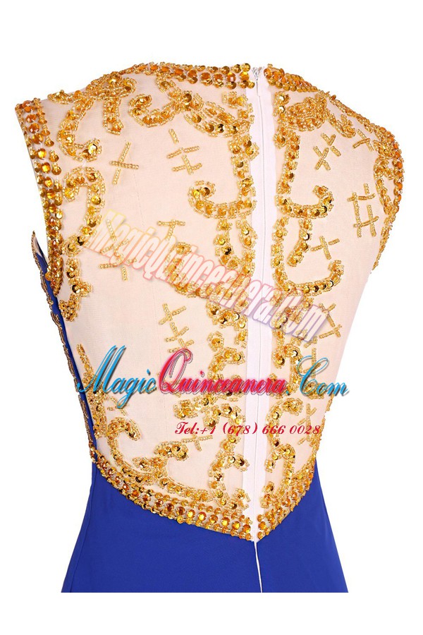 Scoop Chiffon Sleeveless Knee Length Mother Of The Bride Dress and Beading