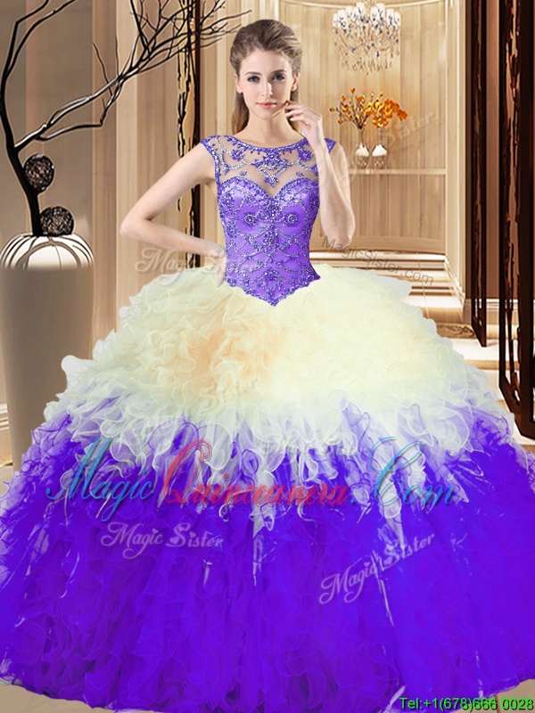 , Scoop Floor Length Ball Gowns Sleeveless Multi-color Sweet 16 Dresses Lace Up