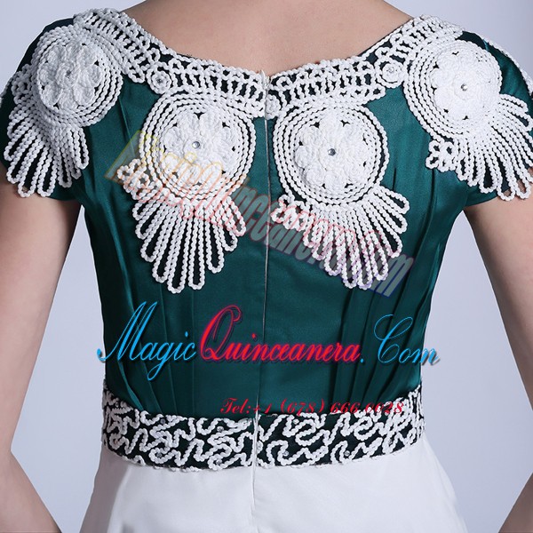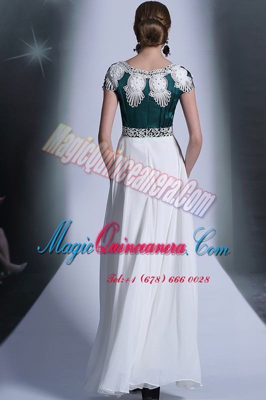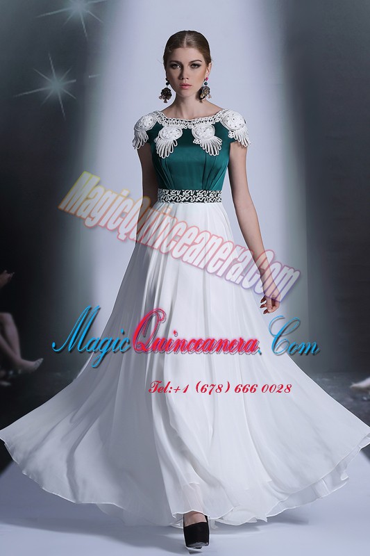 Scoop Floor Length Empire Cap Sleeves White Evening Dress Zipper