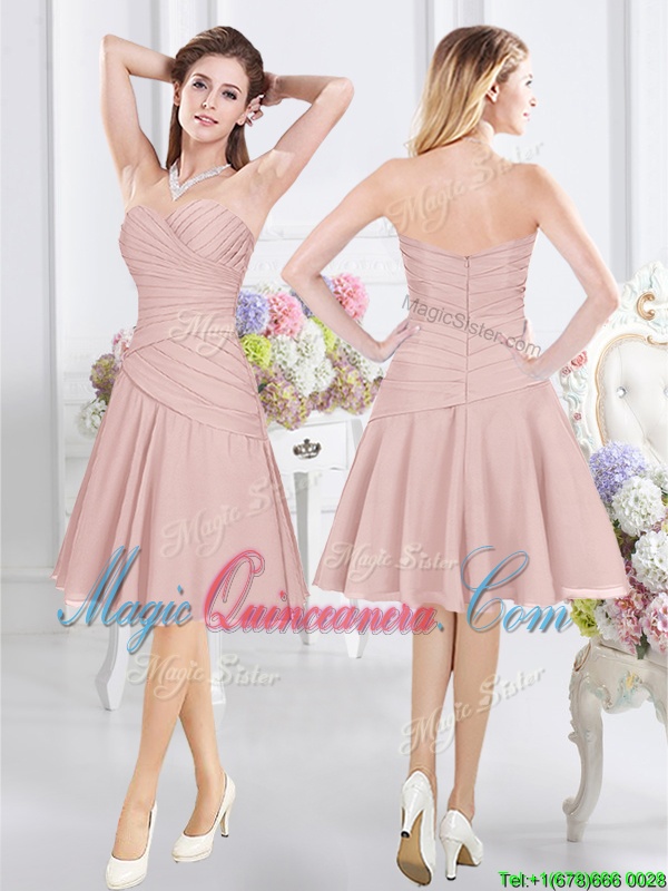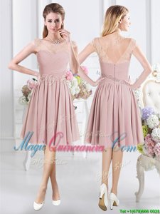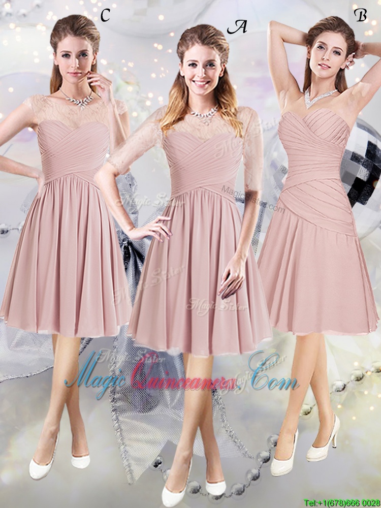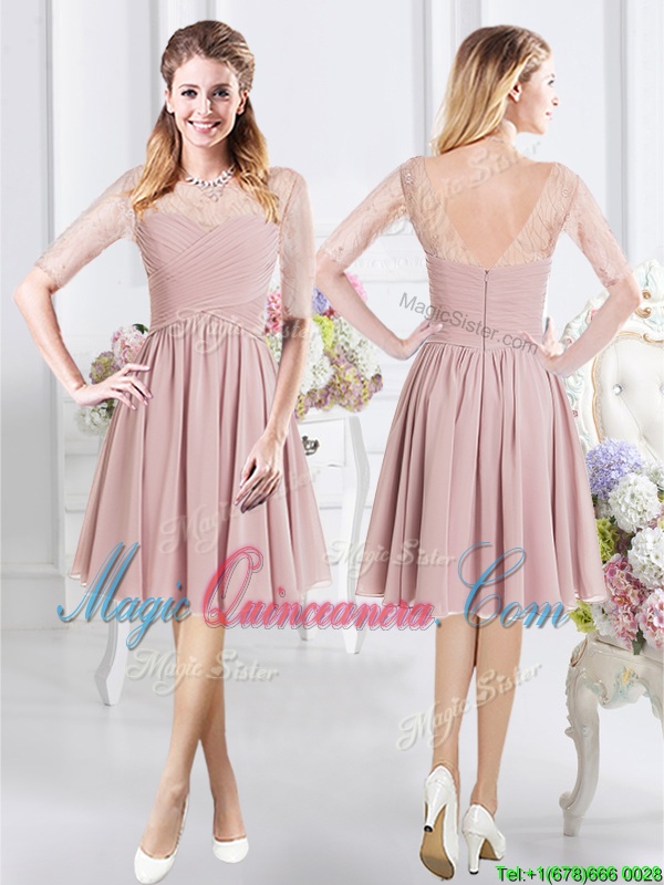 Scoop Half Sleeves Chiffon Quinceanera Court of Honor Dress Lace and Ruching Zipper