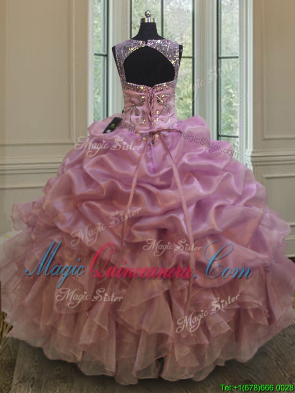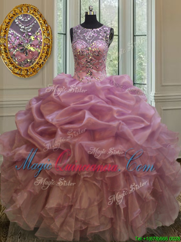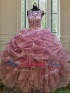 Scoop Lilac Ball Gowns Beading and Ruffles and Pick Ups Vestidos de Quinceanera Lace Up Organza Sleeveless Floor Length