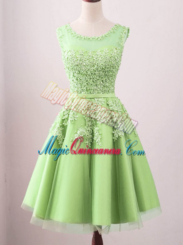 Scoop Sleeveless Lace Up Damas Dress Tulle