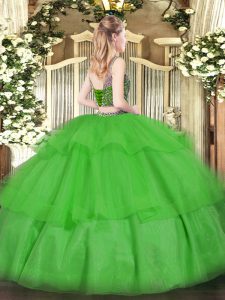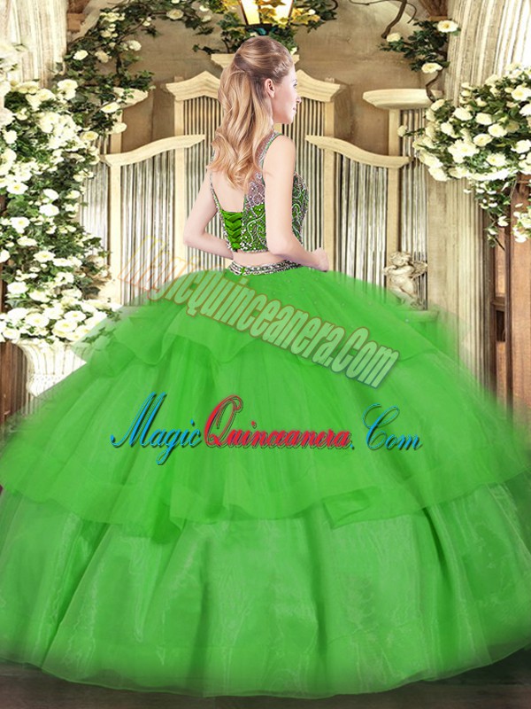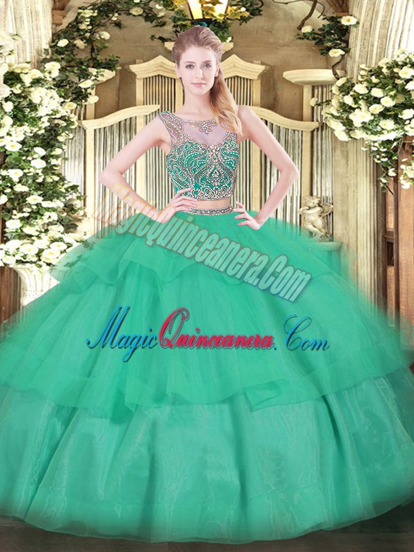 , Scoop Sleeveless Lace Up Vestidos de Quinceanera Turquoise Tulle