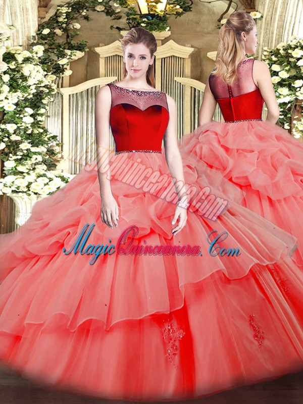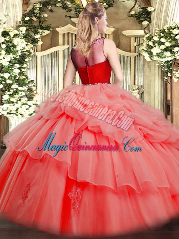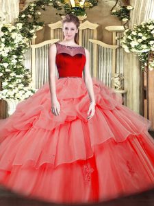 , Scoop Sleeveless Organza Quinceanera Gowns Beading and Appliques Zipper