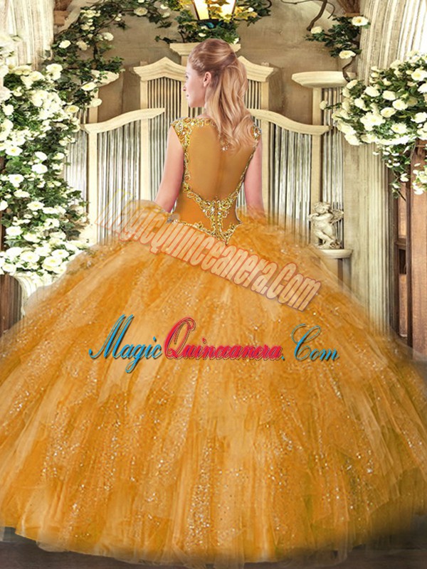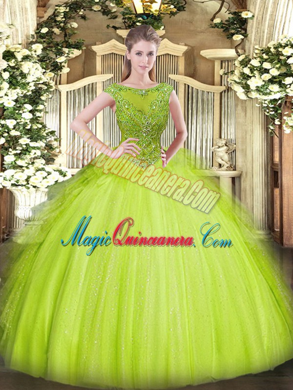 Scoop Sleeveless Tulle Quinceanera Dress Beading Zipper