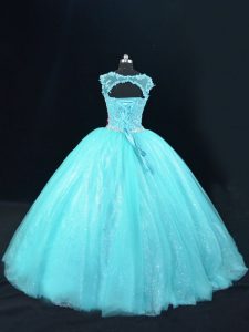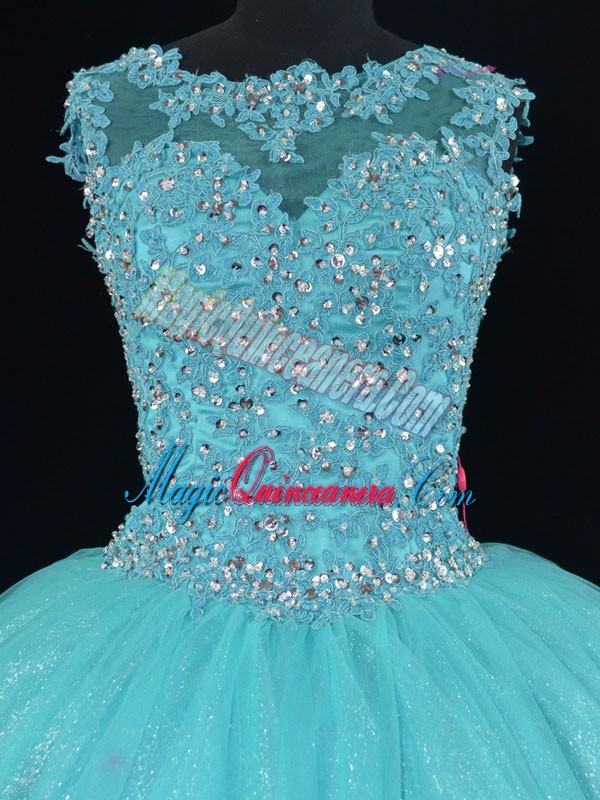 Scoop Sleeveless Tulle Quinceanera Gowns Beading and Lace Lace Up