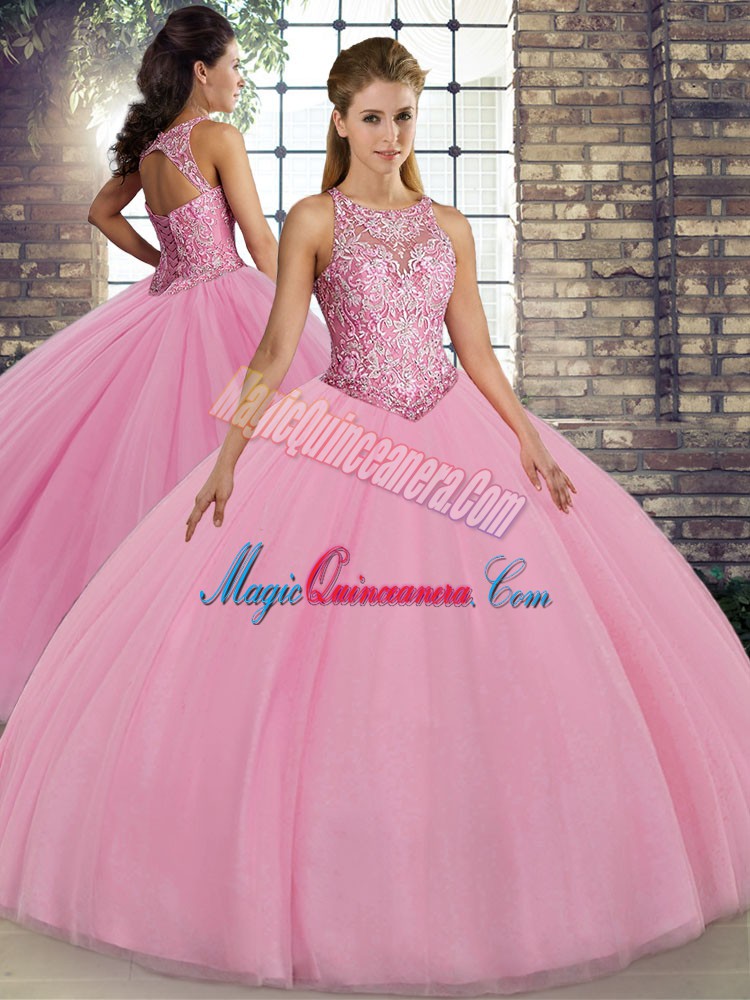 Scoop Sleeveless Tulle Sweet 16 Dress Embroidery Lace Up