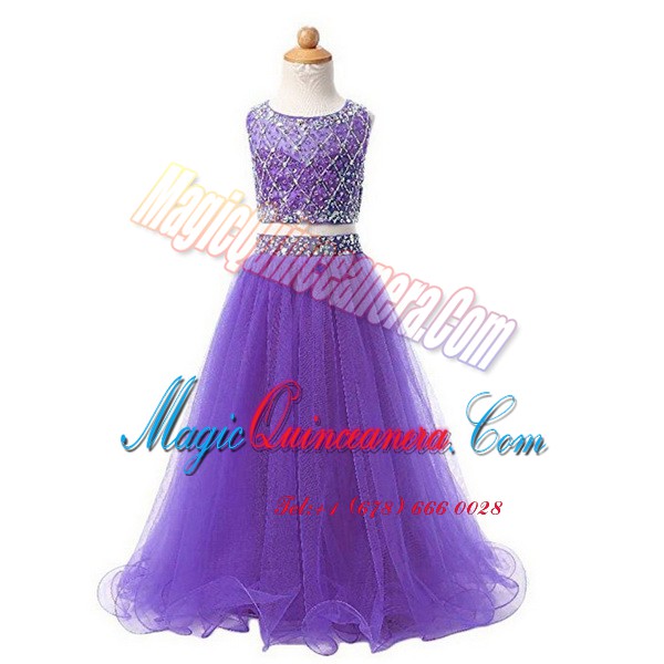 , Scoop Sleeveless Zipper Floor Length Beading Pageant Dress for Womens