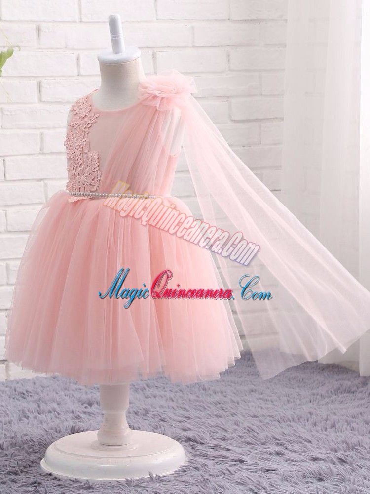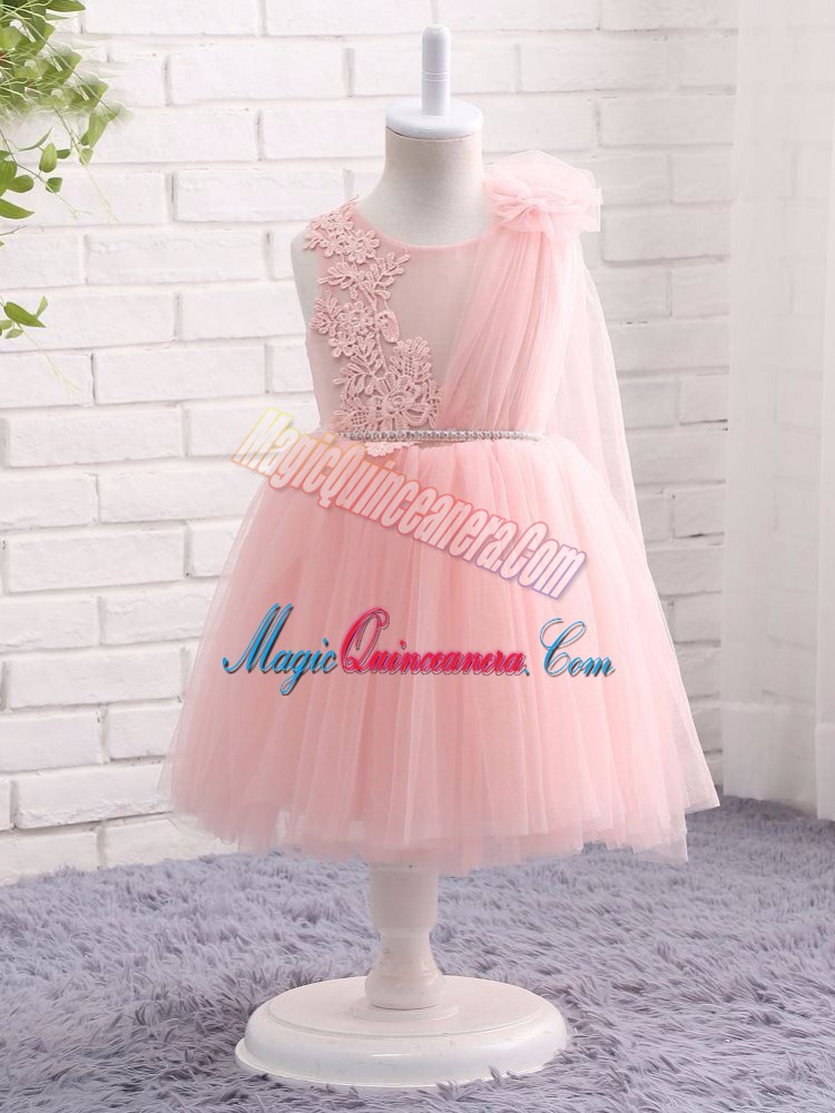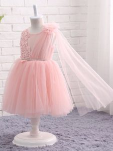 , Scoop Sleeveless Zipper Pageant Gowns Baby Pink Tulle