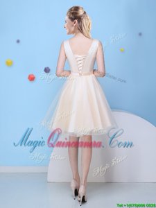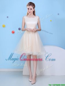 Scoop Tulle Sleeveless Knee Length Vestidos de Damas and Bowknot