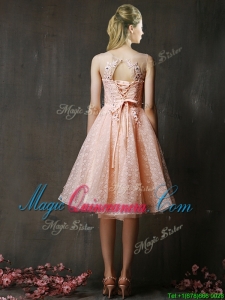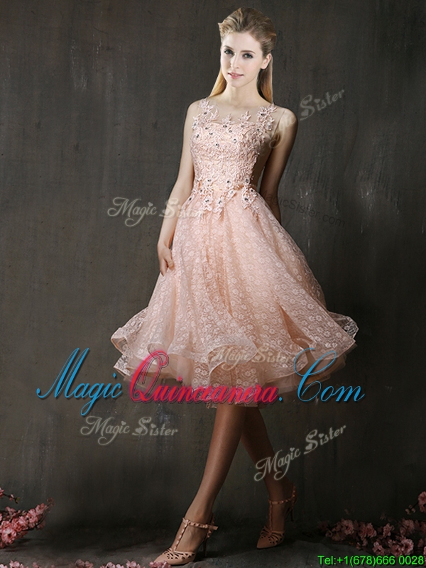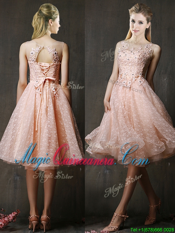 See Through Beaded and Applique Peach Dama Dress with Polka Dot