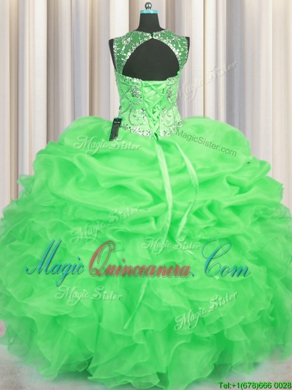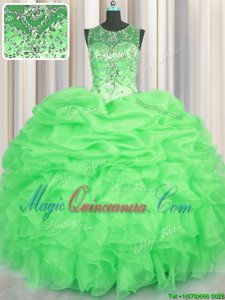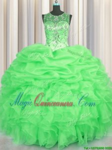 See Through Floor Length Quinceanera Gowns Scoop Sleeveless Lace Up