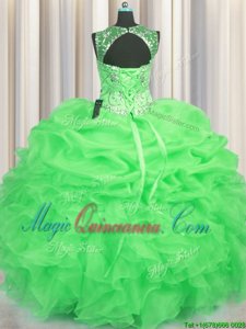 , See Through Floor Length Quinceanera Gowns Scoop Sleeveless Lace Up