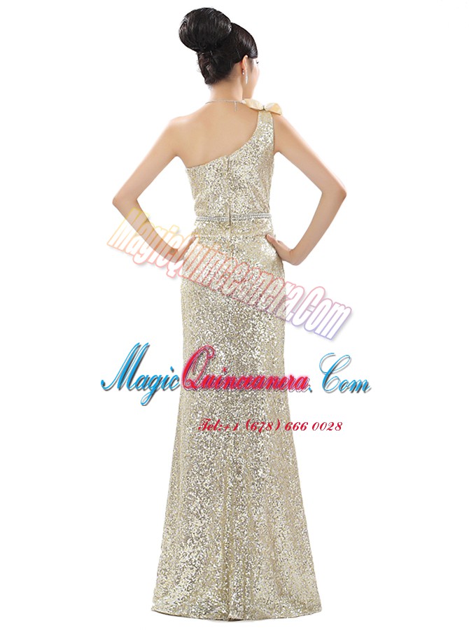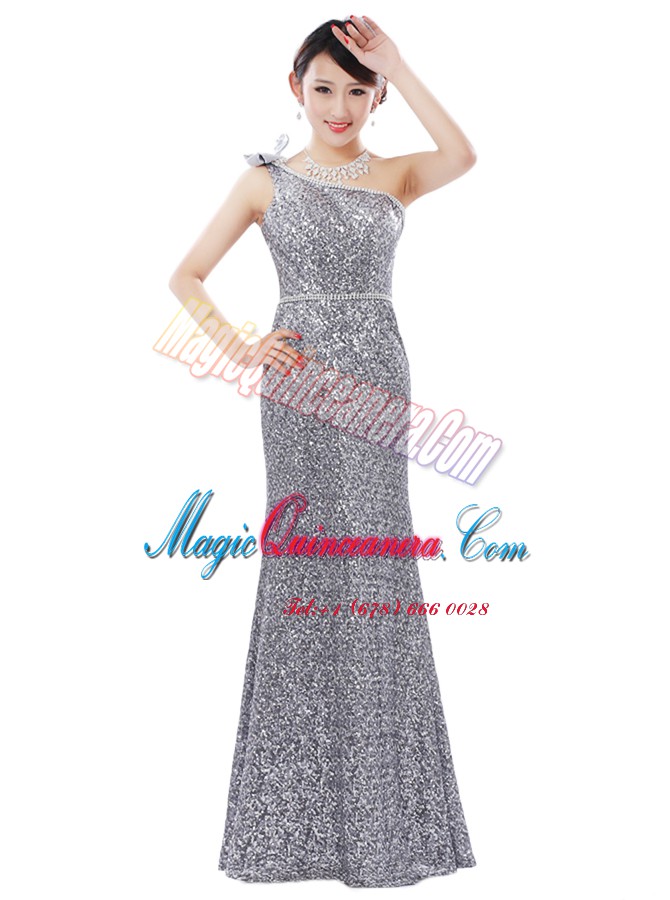 Sequins Column/Sheath Mother Of The Bride Dress Silver One Shoulder Sequined Sleeveless Floor Length Zipper