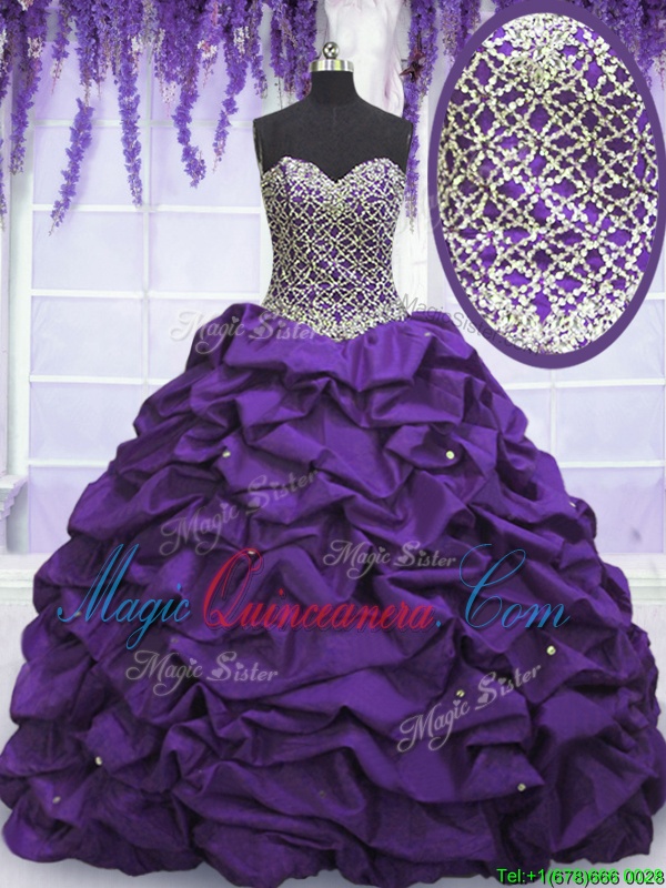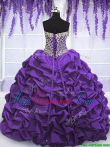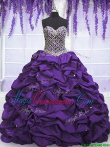 Sequins Pick Ups Floor Length Eggplant Purple Sweet 16 Dress Sweetheart Sleeveless Lace Up