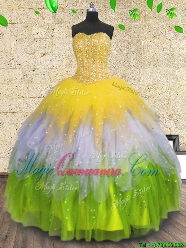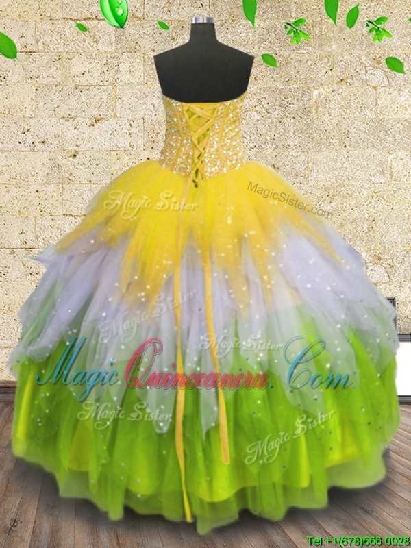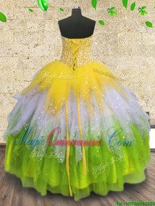, Sequins Sweetheart Sleeveless Lace Up 15 Quinceanera Dress Multi-color Tulle