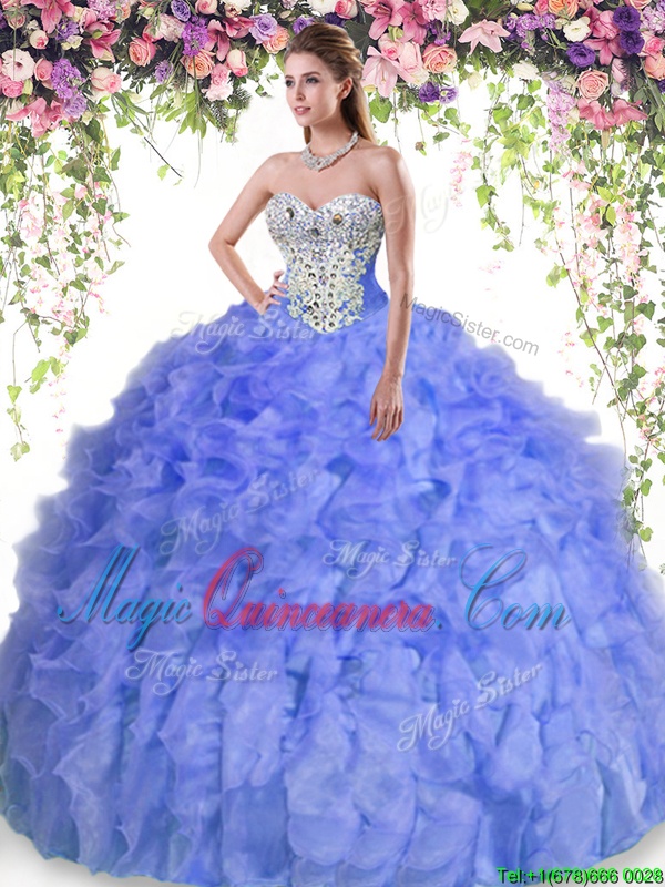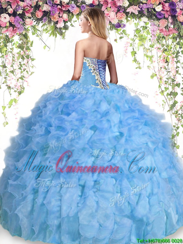 New Arrival Baby Blue Sweetheart Lace Up Beading and Ruffles Vestidos de Quinceanera Sleeveless