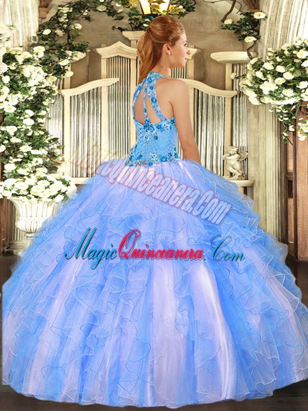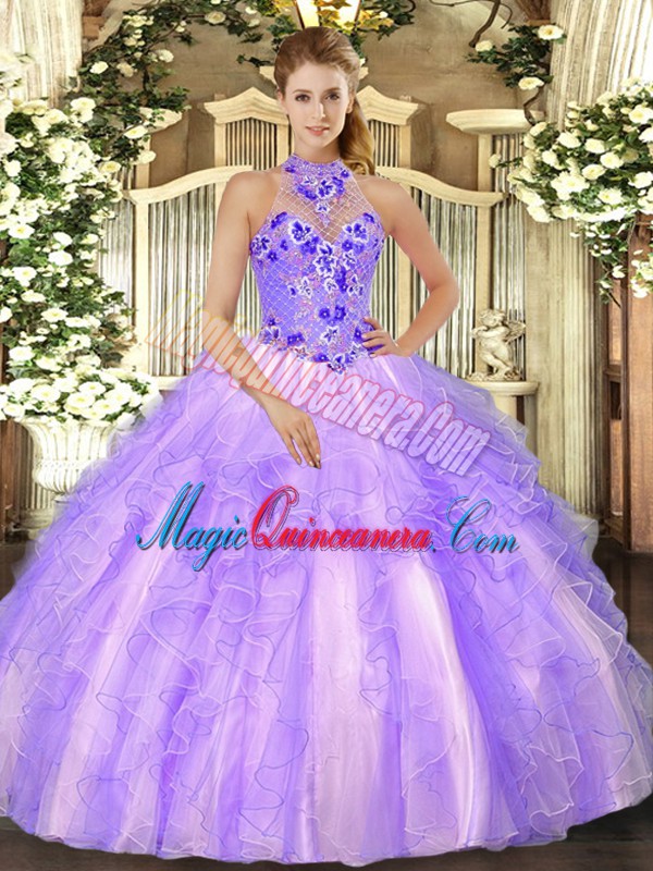 Sexy Floor Length Lavender 15 Quinceanera Dress Organza Sleeveless Beading and Ruffles