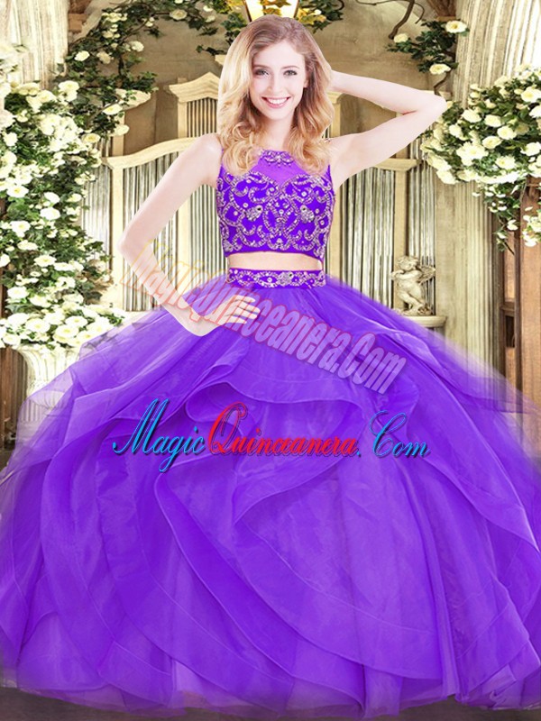 Sexy Floor Length Two Pieces Sleeveless Lavender Vestidos de Quinceanera Zipper