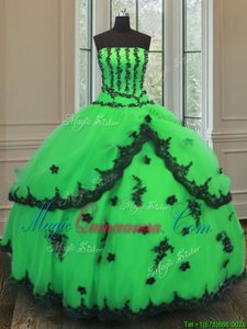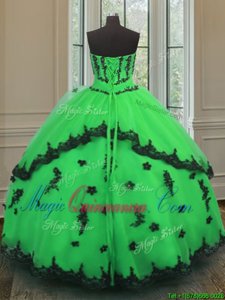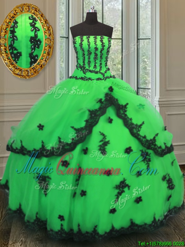 Sexy Organza Strapless Sleeveless Lace Up Beading and Embroidery 15th Birthday Dress in Green