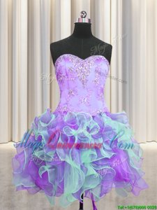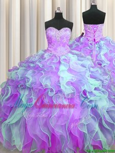 Sexy Three Piece Floor Length Multi-color 15th Birthday Dress Sweetheart Sleeveless Lace Up