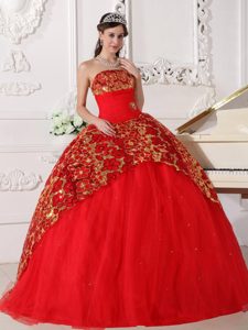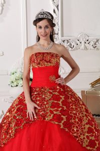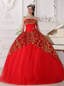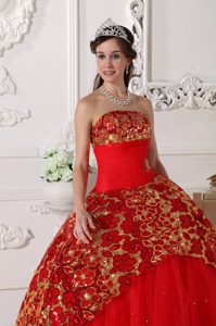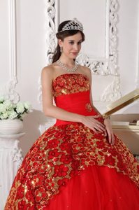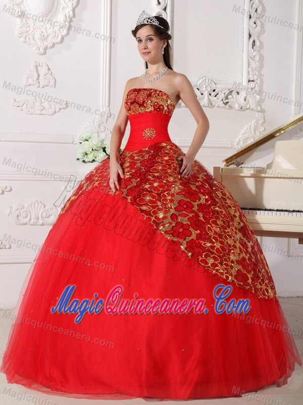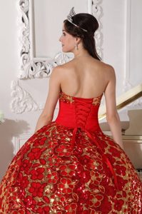 upscale ruching quinceanera gowns dress, Shimmery Tulle Paillette Red Sweet 15 Dresses with Floral Patterns