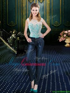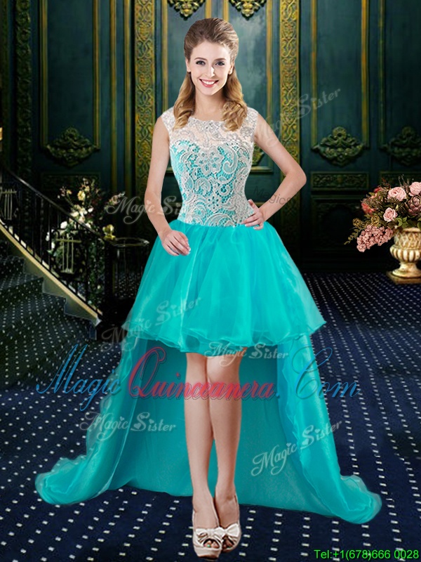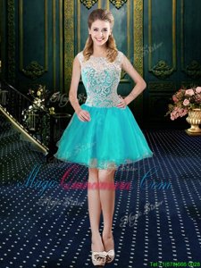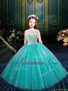 Shining Aqua Blue Ball Gowns Lace Quinceanera Dress Lace Up Tulle Sleeveless Floor Length