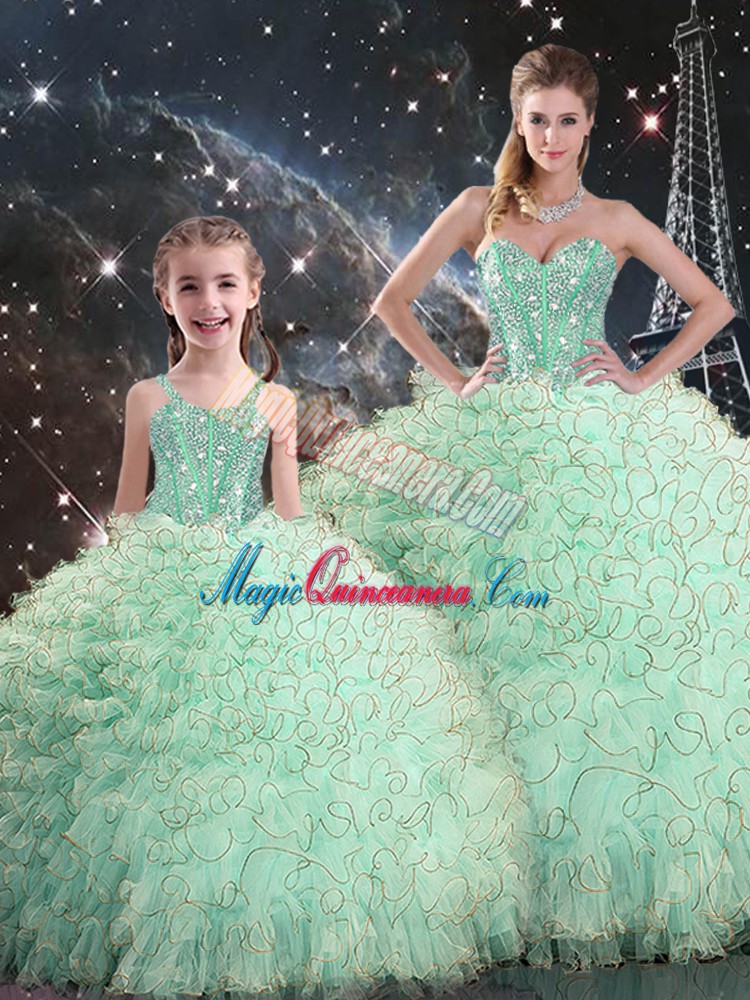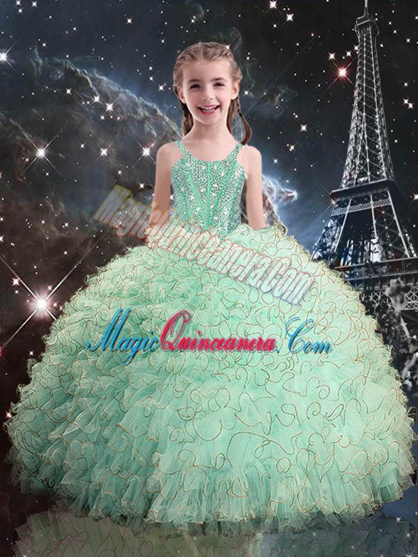 Shining Ball Gowns 15th Birthday Dress Apple Green Sweetheart Organza Sleeveless Floor Length Lace Up