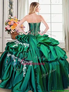 Shining Dark Green Ball Gowns Sweetheart Sleeveless Taffeta Floor Length Lace Up Beading and Appliques and Pick Ups Vestidos de Quinceanera