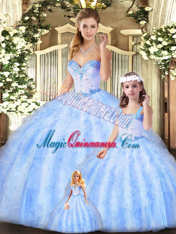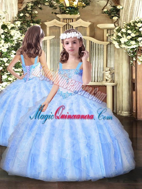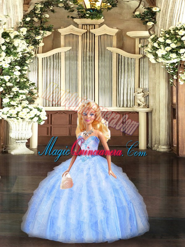 Shining Organza Sleeveless Floor Length Sweet 16 Quinceanera Dress and Beading and Ruffles
