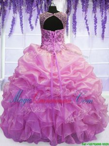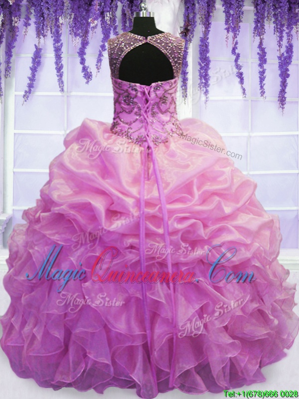 Shining Scoop Pick Ups Lilac Sleeveless Organza Lace Up Sweet 16 Dress for Military Ball and Sweet 16 and Quinceanera