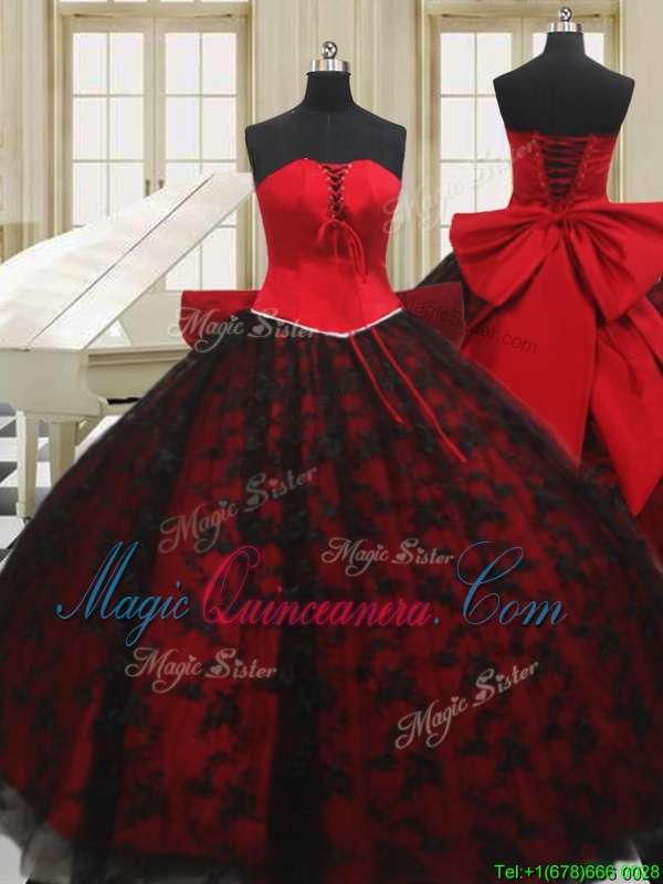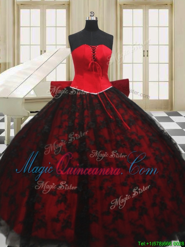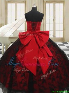 Shining Strapless Sleeveless Sweet 16 Dress Floor Length Beading and Bowknot Red Organza