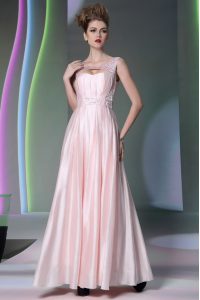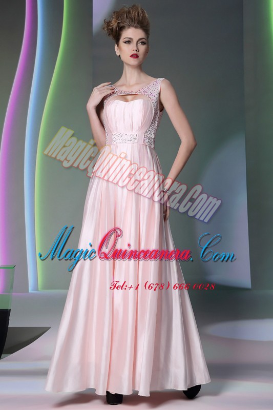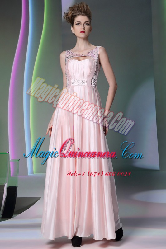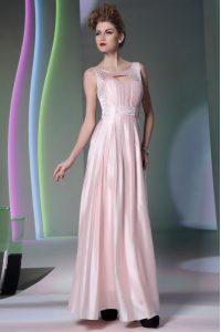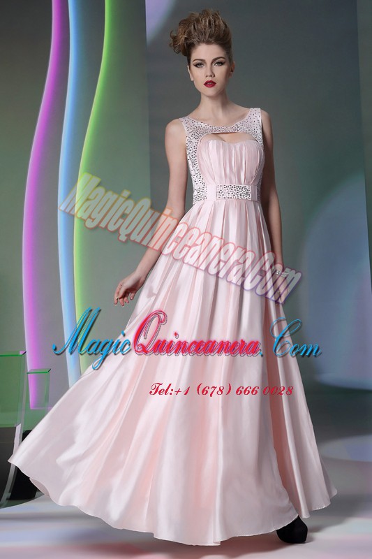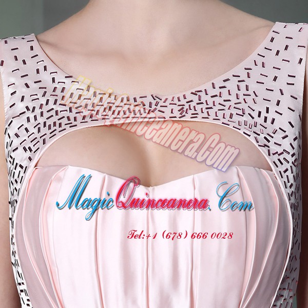 , Silk Like Satin Scoop Sleeveless Zipper Beading Prom Dresses in Baby Pink