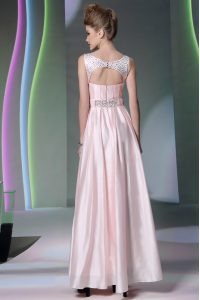 Silk Like Satin Scoop Sleeveless Zipper Beading Prom Dresses in Baby Pink