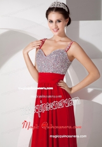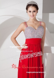 Silver Beads Chiffon Ruch Beading Straps Mother Dress Sexy 2015