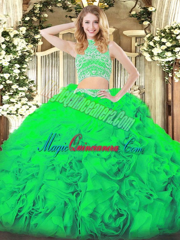 , Simple Beading and Ruffles Quinceanera Dress Green Backless Sleeveless Floor Length