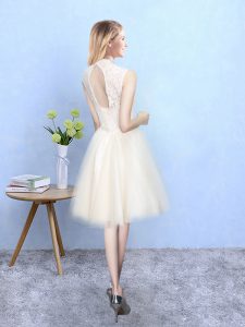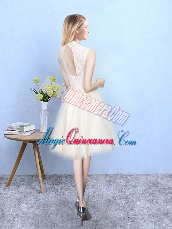 Simple Champagne V-neck Lace Up Lace Dama Dress Sleeveless