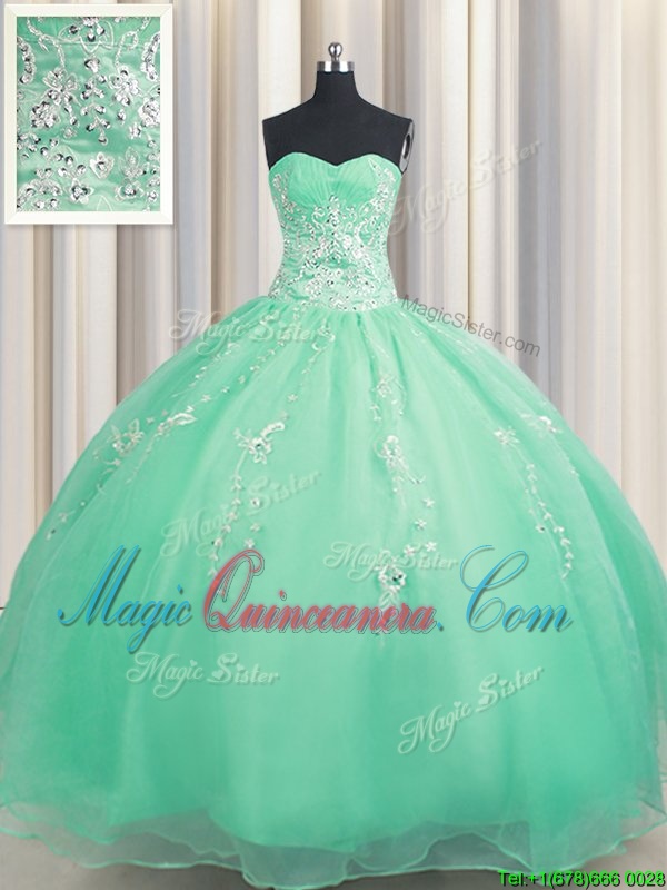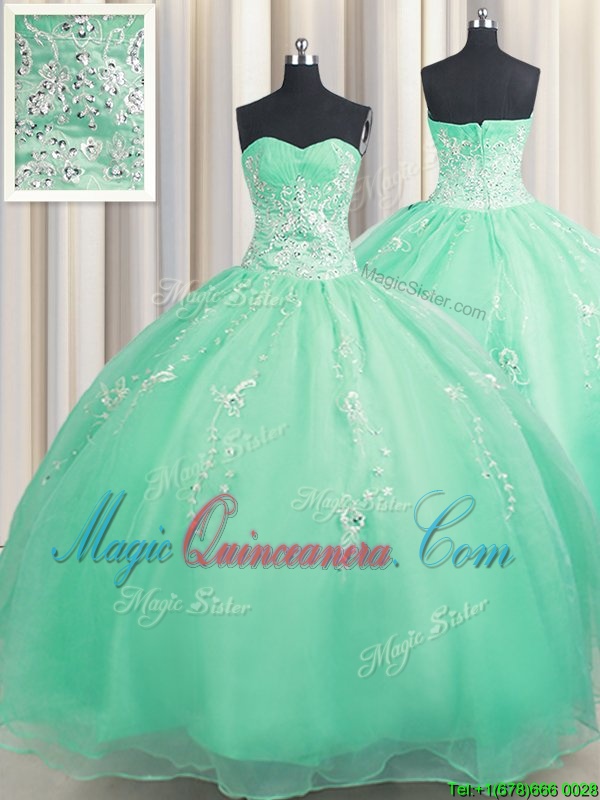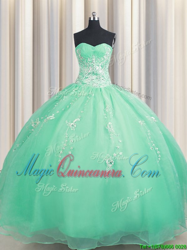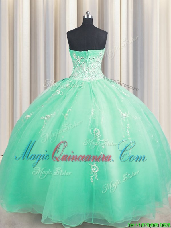 Simple Floor Length Zipper Quinceanera Dress Turquoise and In for Military Ball and Sweet 16 and Quinceanera with Beading and Appliques