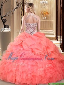 Simple Halter Top Pick Ups Floor Length Ball Gowns Sleeveless Yellow 15th Birthday Dress Lace Up