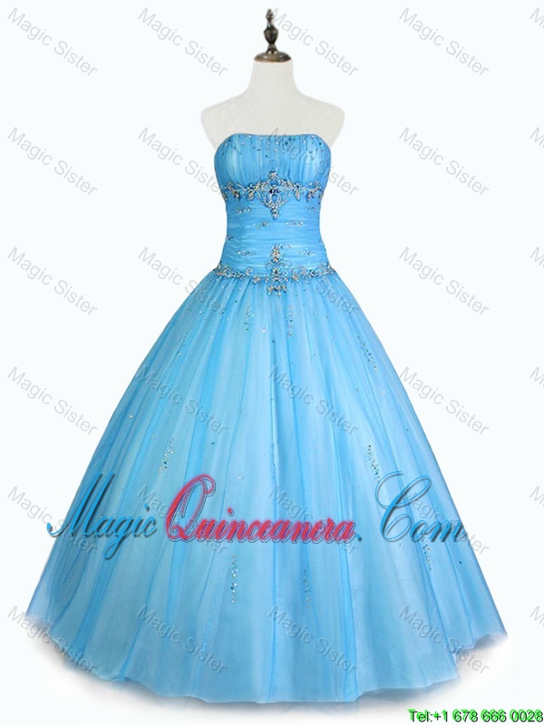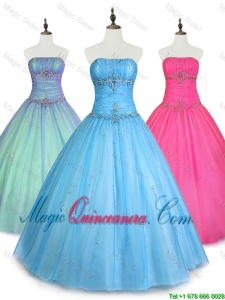 Simple Strapless Beaded Quinceanera Dresses with Floor Length for 2016