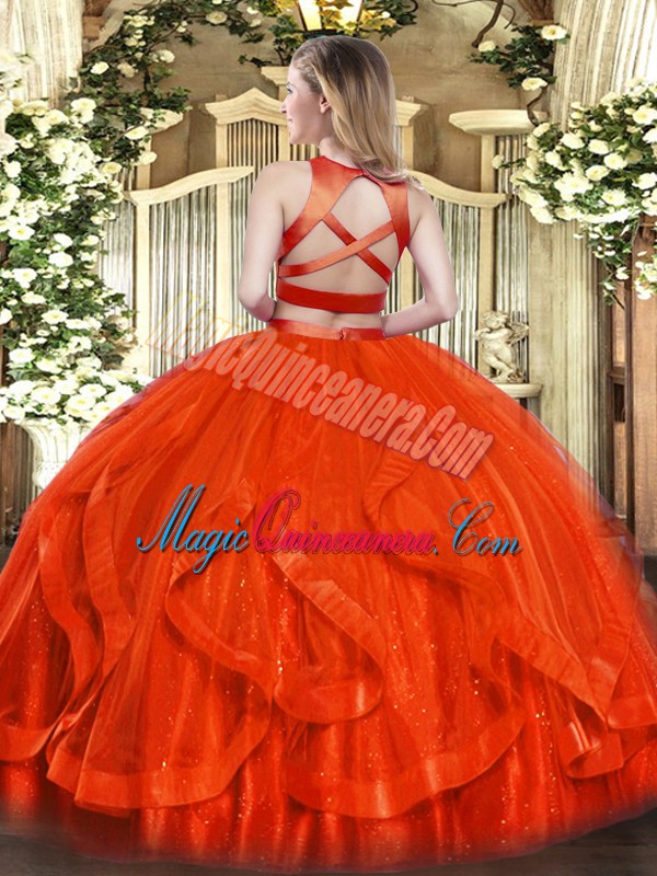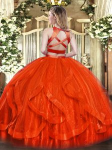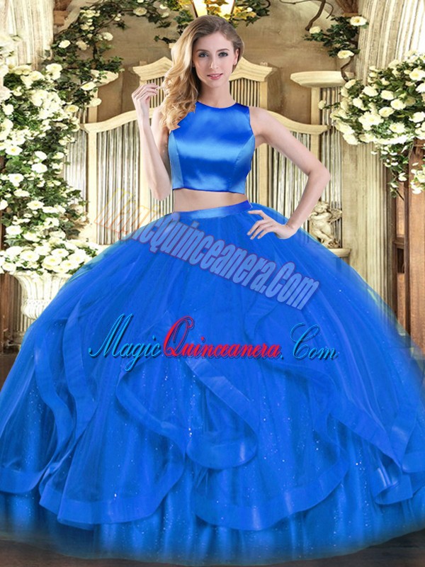 Simple Tulle Sleeveless Floor Length Vestidos de Quinceanera and Ruffles