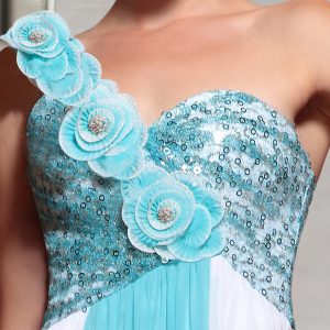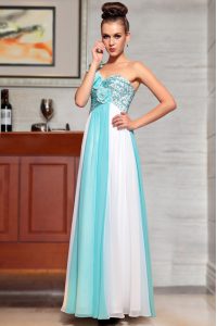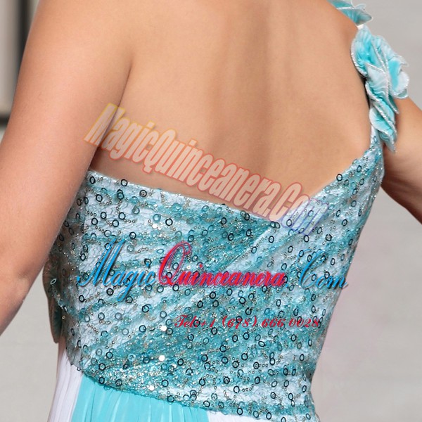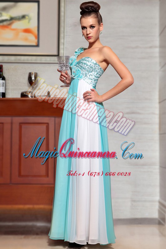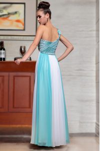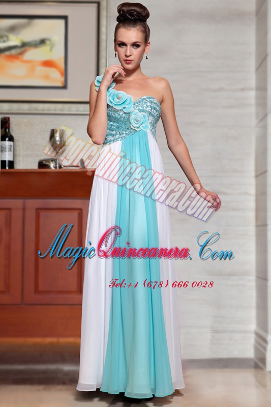 Sleeveless Ankle Length Beading and Sequins and Hand Made Flower Side Zipper Mother Of The Bride Dress with Blue And White