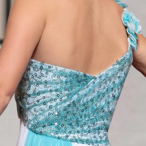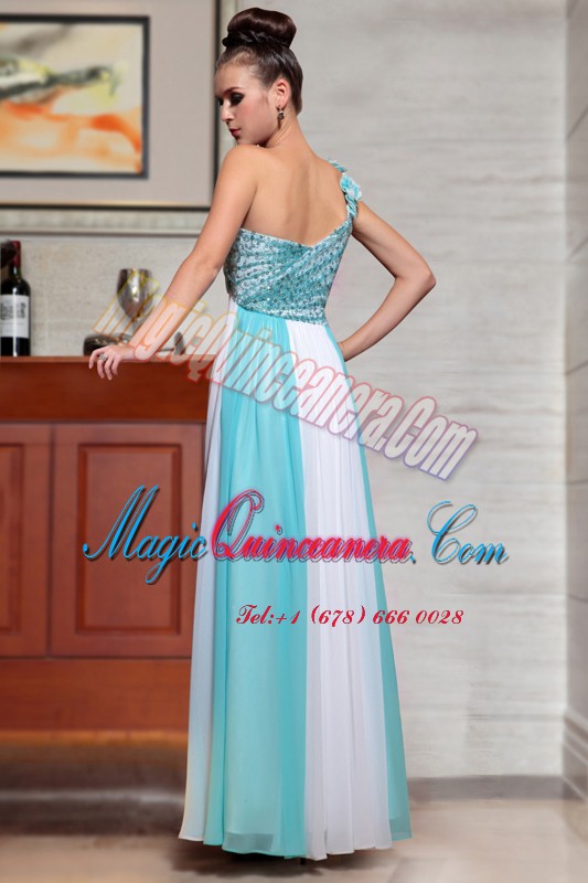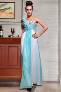 One Shoulder Sleeveless Side Zipper Ankle Length Beading and Appliques and Ruching