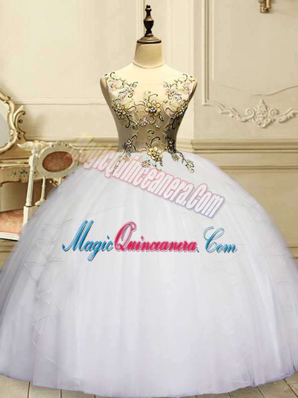 Sleeveless Appliques and Ruffles Lace Up Quinceanera Gown