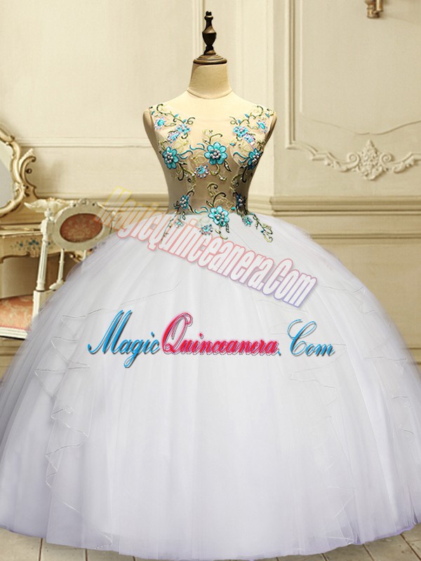 Sleeveless Appliques and Ruffles Lace Up Sweet 16 Dresses
