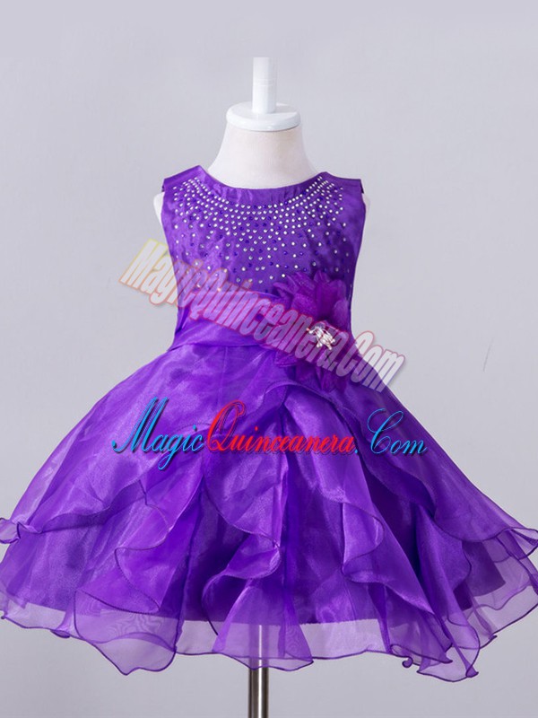 Sleeveless Beading and Hand Made Flower Zipper Pageant Dresses
