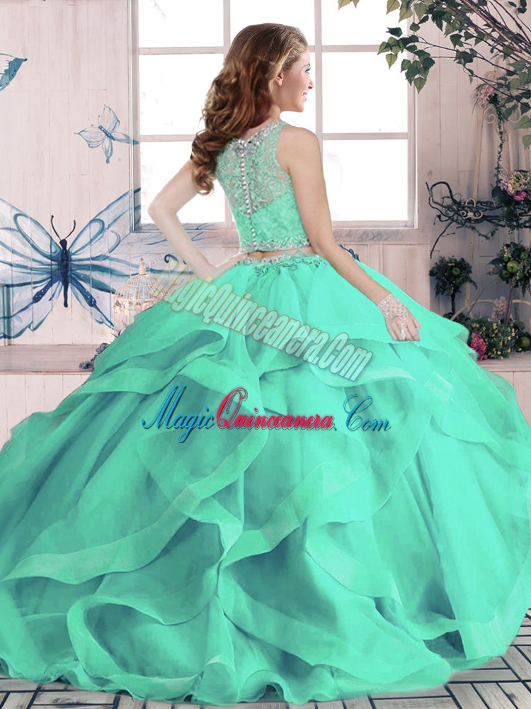 Sleeveless Beading and Lace and Ruffles Lace Up Quinceanera Gowns