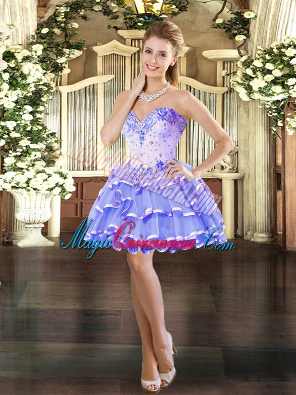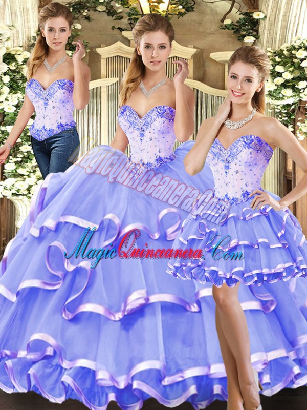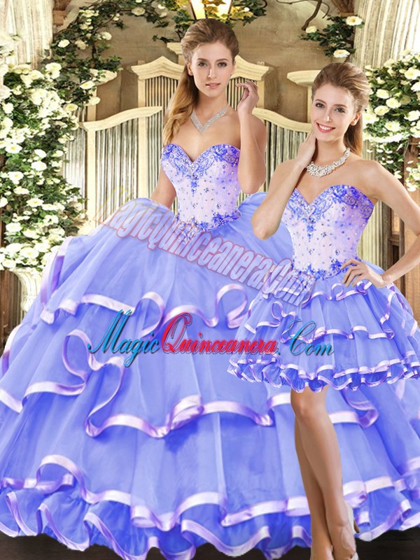 , Sleeveless Beading and Ruffled Layers Lace Up Ball Gown Prom Dress